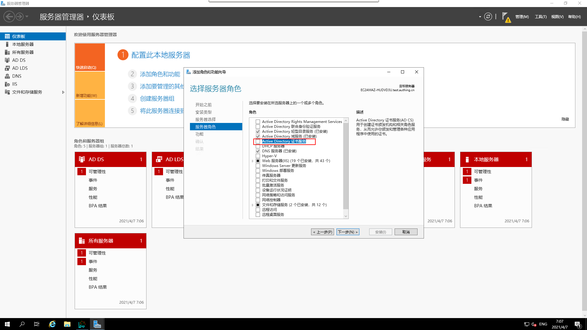 测试 AD CS 的相关配置是否出现问题, 是否是可用的。