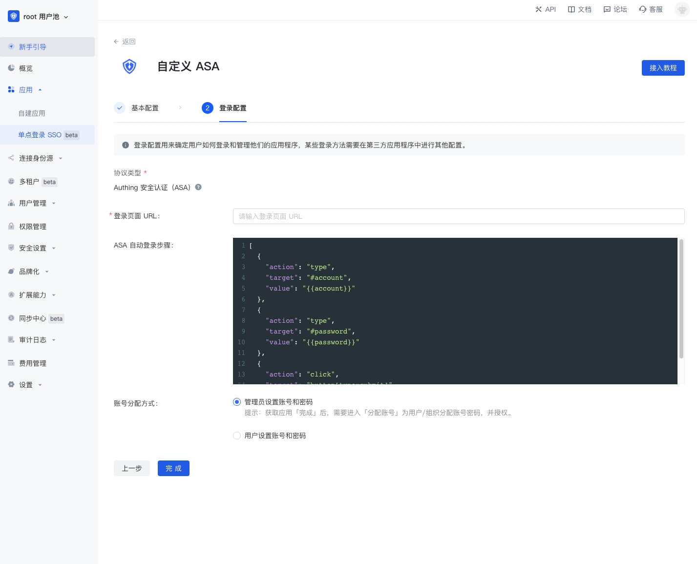 - 账号分配方式目前只支持 管理员设置账号和密码