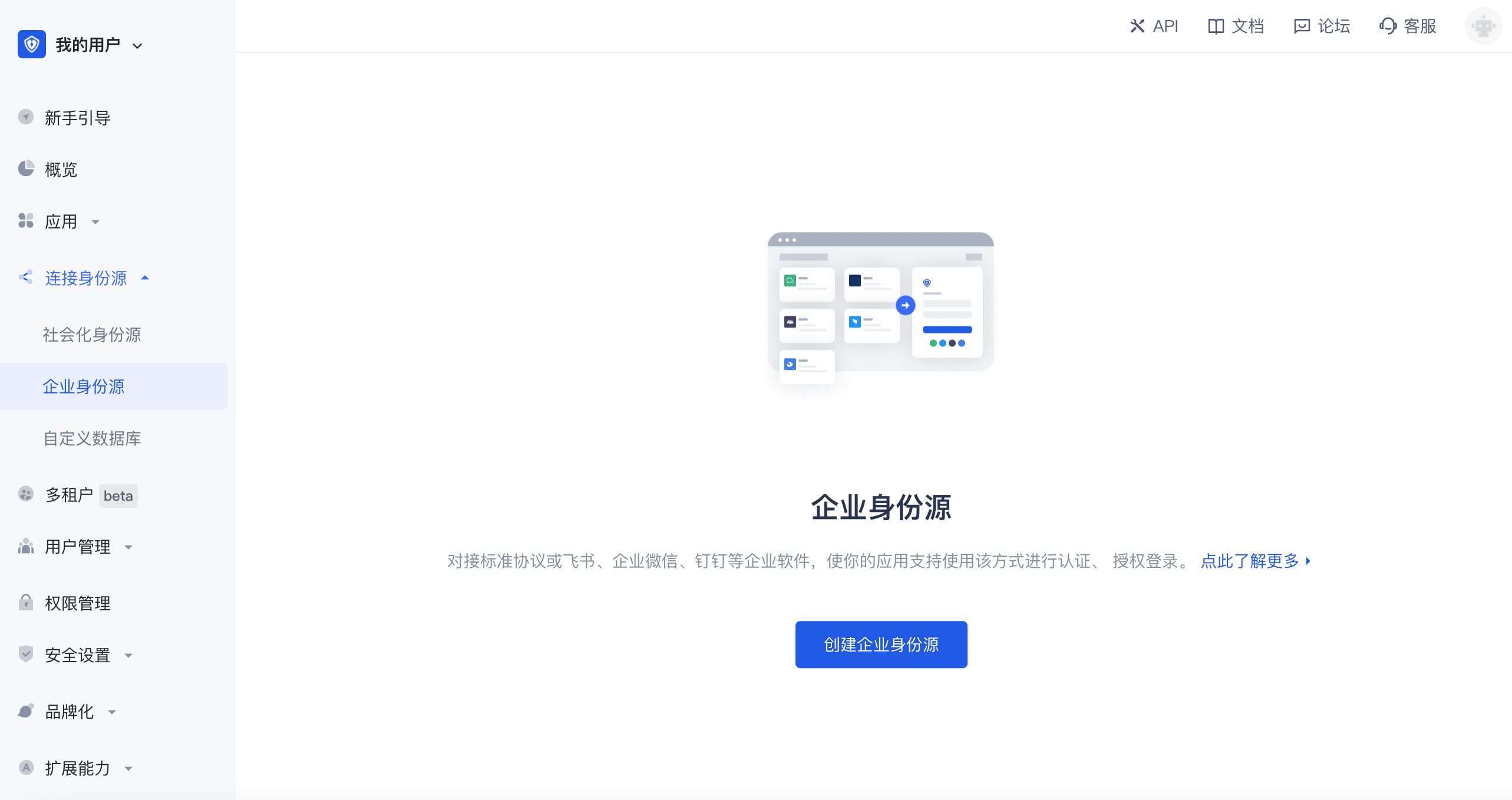2.1 请在 Authing 控制台 的「企业身份源」页面,点击「创建企业身份源」按钮,进入「选择企业身份源」页面。