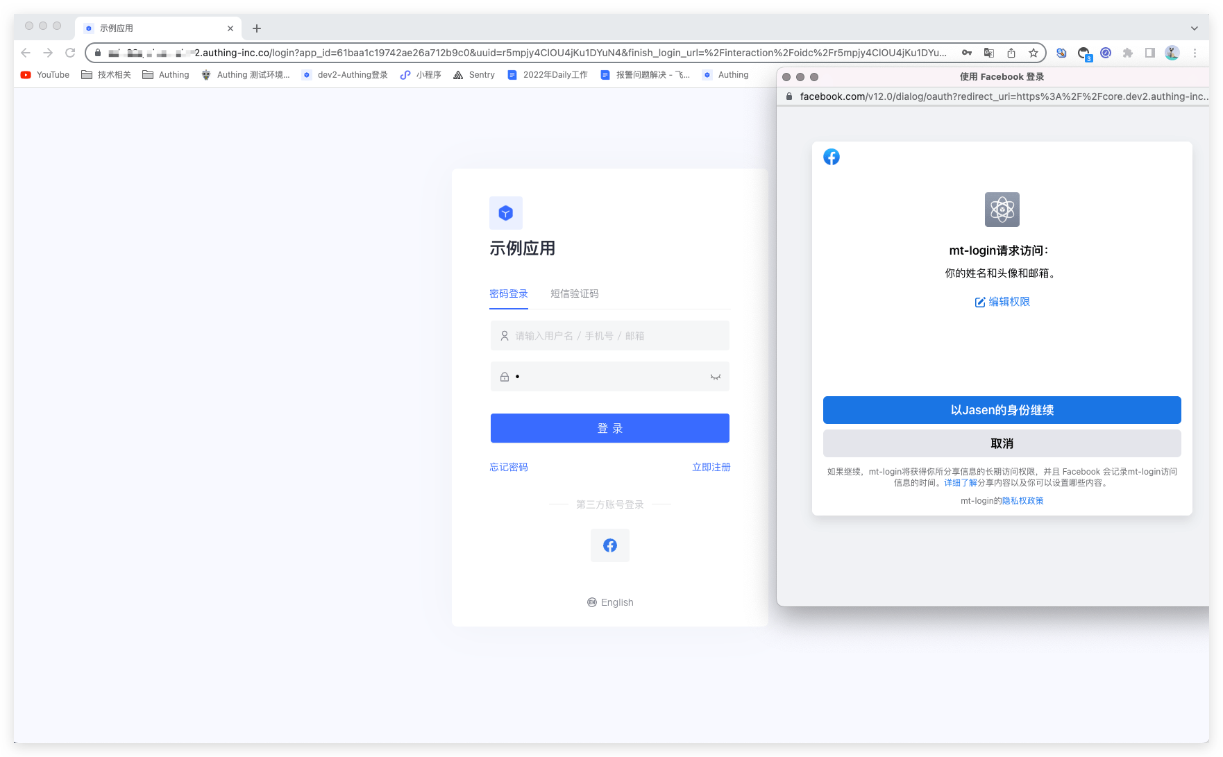 - 概述:Facebook 社会化登录是用户以 Facebook 为身份源安全登录第三方应用或者网站。在 Authing 中配置并开启 Facebook 的社会化登录,即可实现通过 Authing 快速获取 Facebook 基本开放的信息和帮助用户实现免密登录功能。