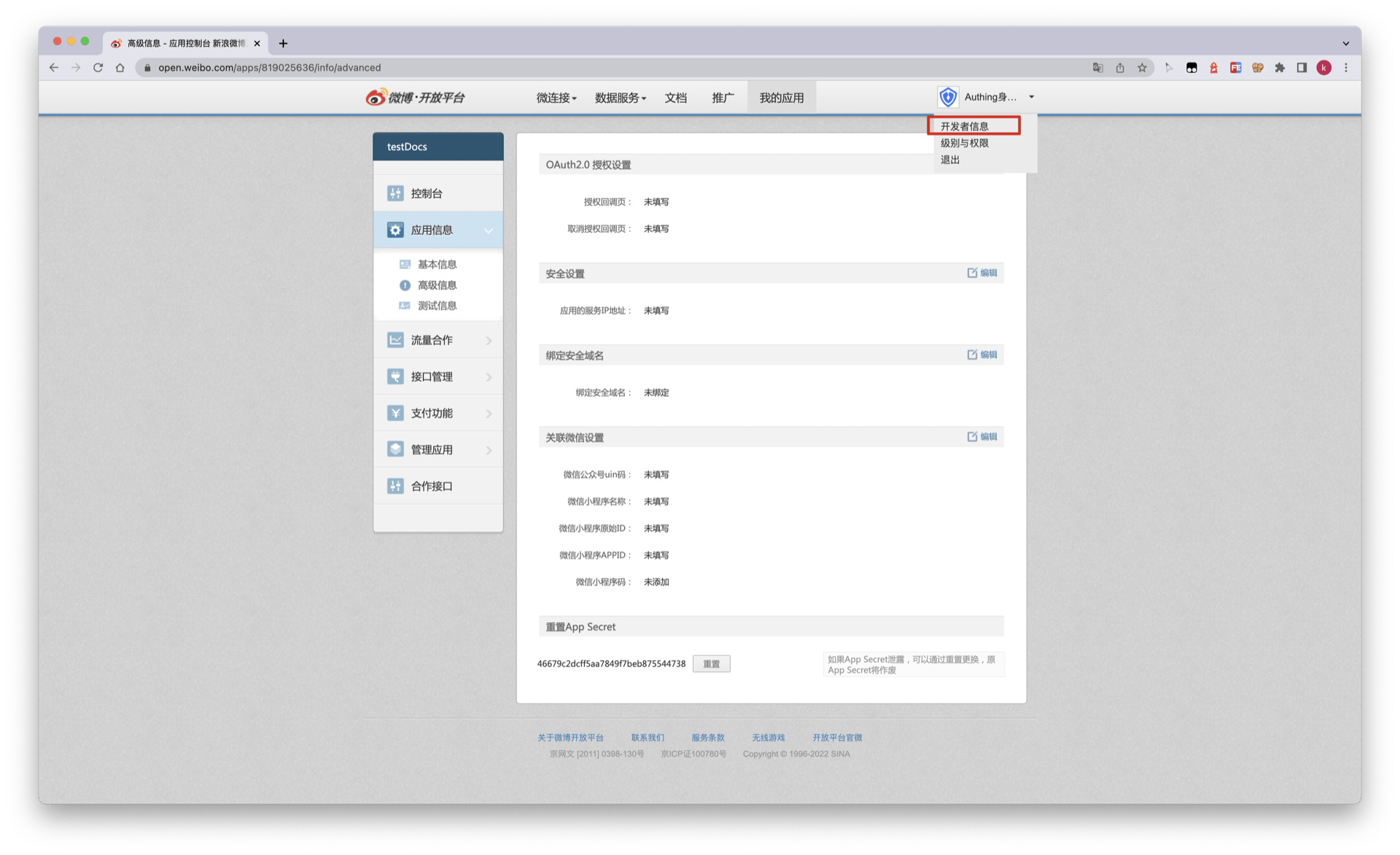 - 如果你未开通微博开放平台账号,请先前往 微博开放平台 (opens new window) 注册开发者账号。
