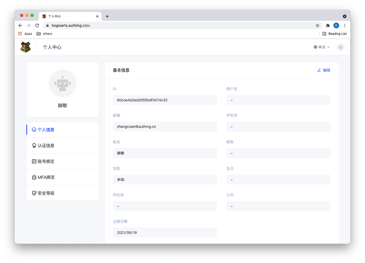 在顶导最右侧,用户可以点击 个人中心 按钮以进入用户个人中心,来编辑个人信息。
