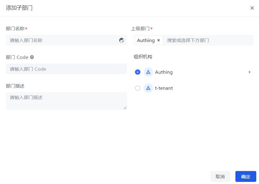 如果你还没有创建自己的组织机构,我们推荐你使用 Authing 作为主的身份源,存储用户和组织机构数据;如果你在其他地方存储了自己的组织机构数据,我们也支持将第三方的组织机构数据导入到 Authing。