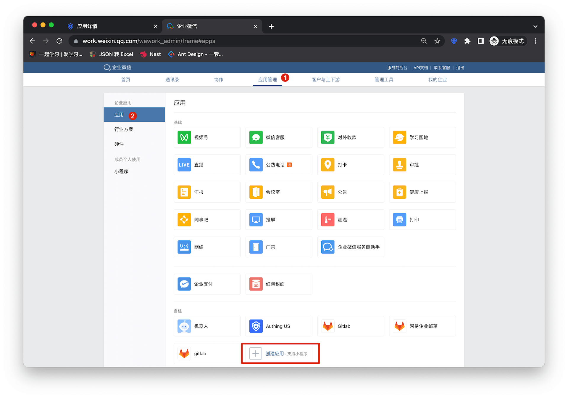对于自建应用,你需要进行如下操作: