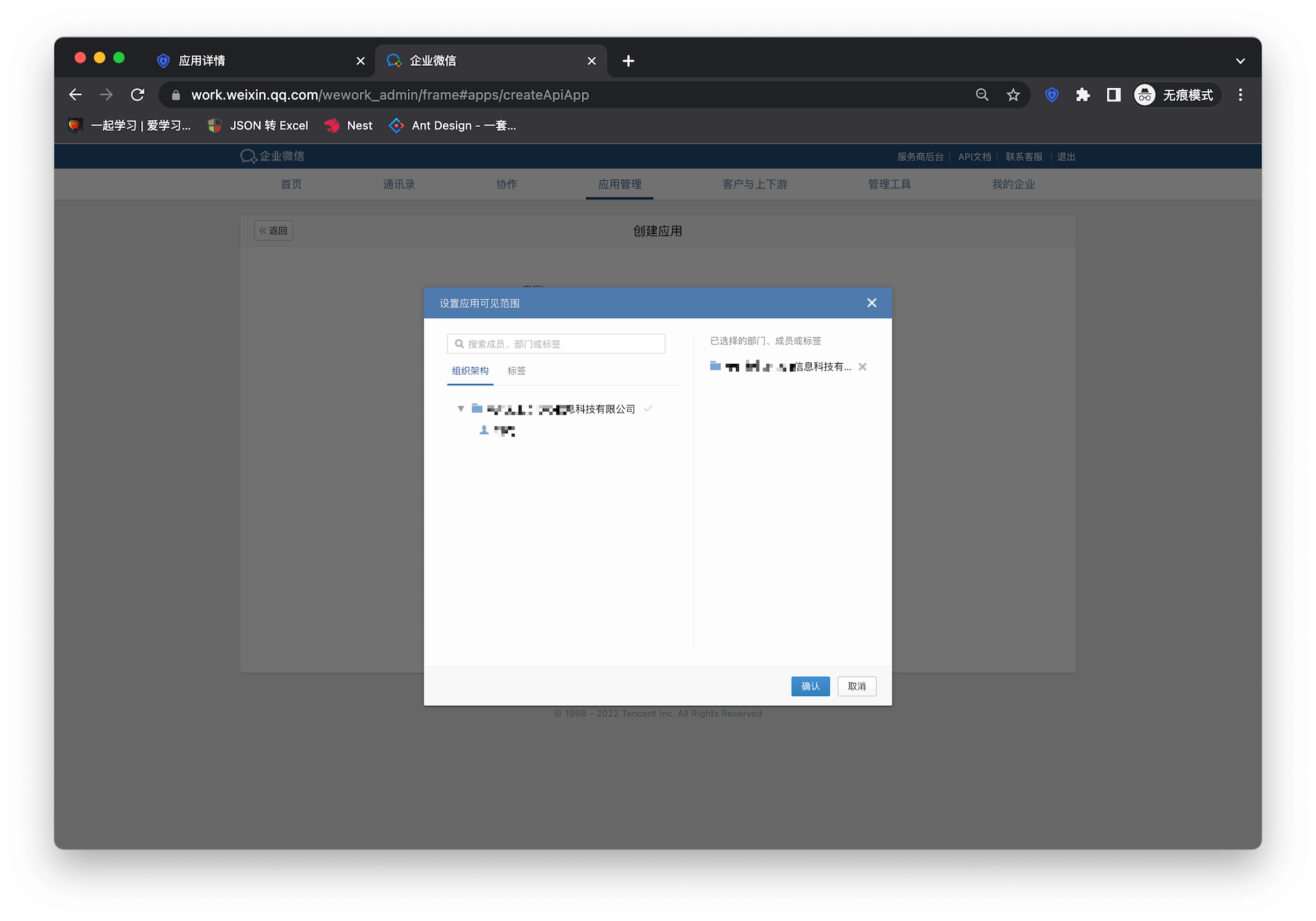 首先需要创建自建应用并完成配置,创建应用参考 如何创建自建应用