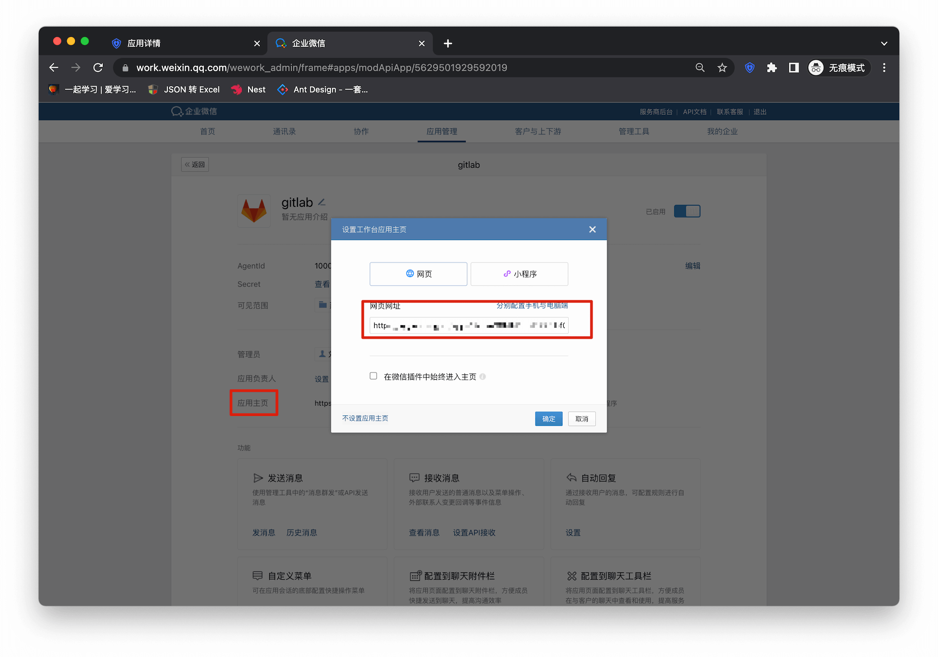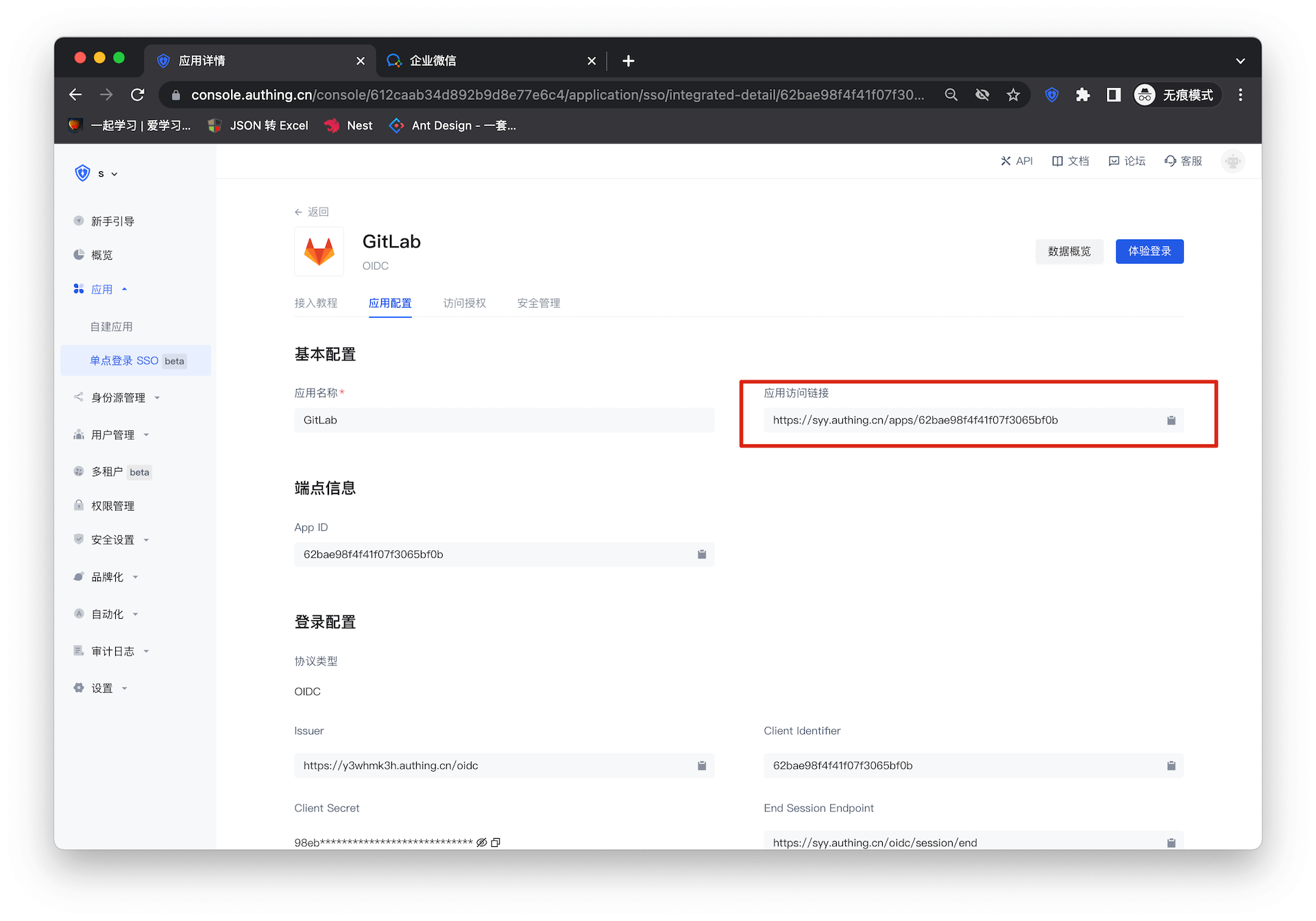 进入 Gitlab 配置详情页,复制应用访问链接