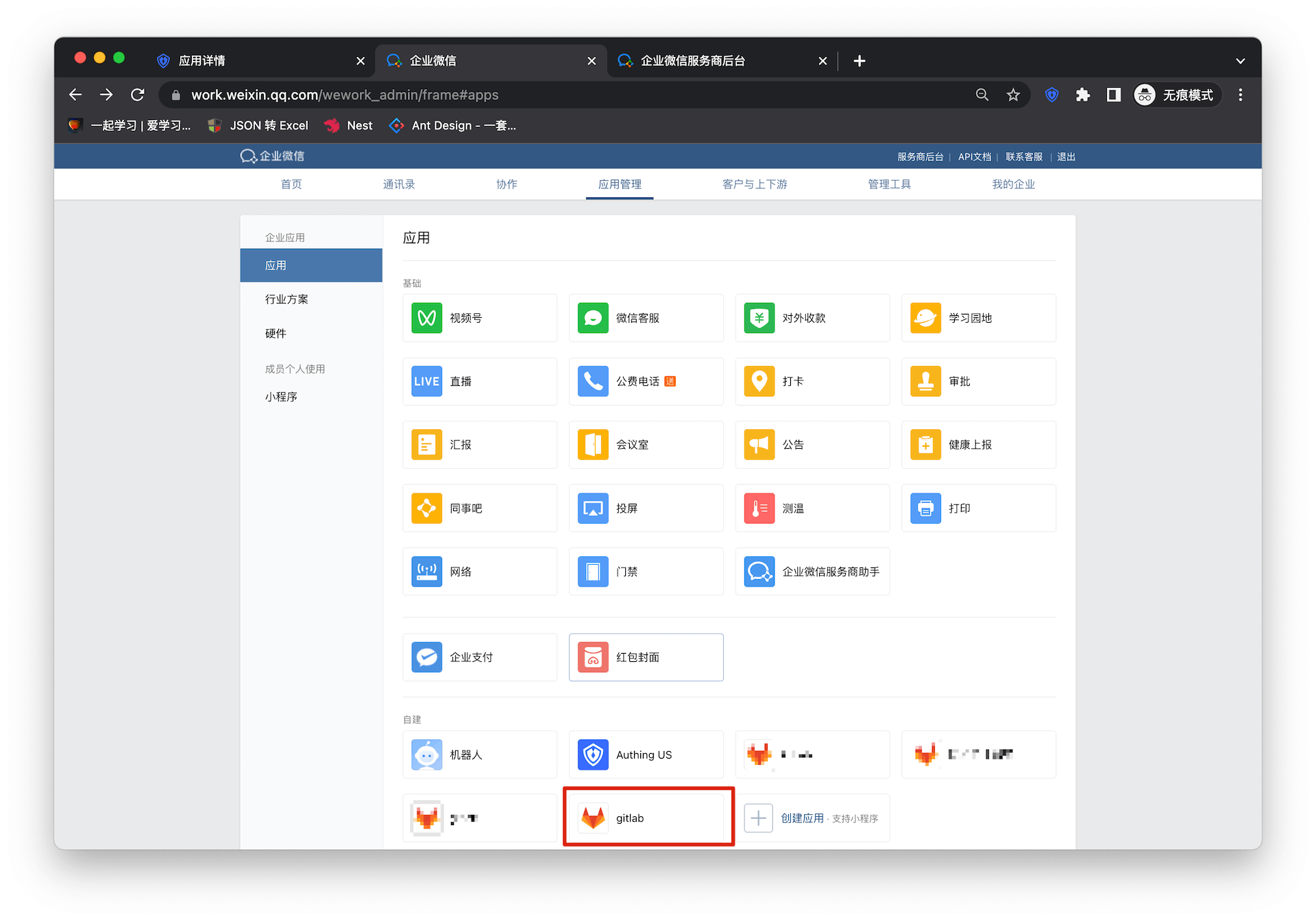 ¶ 自建应用