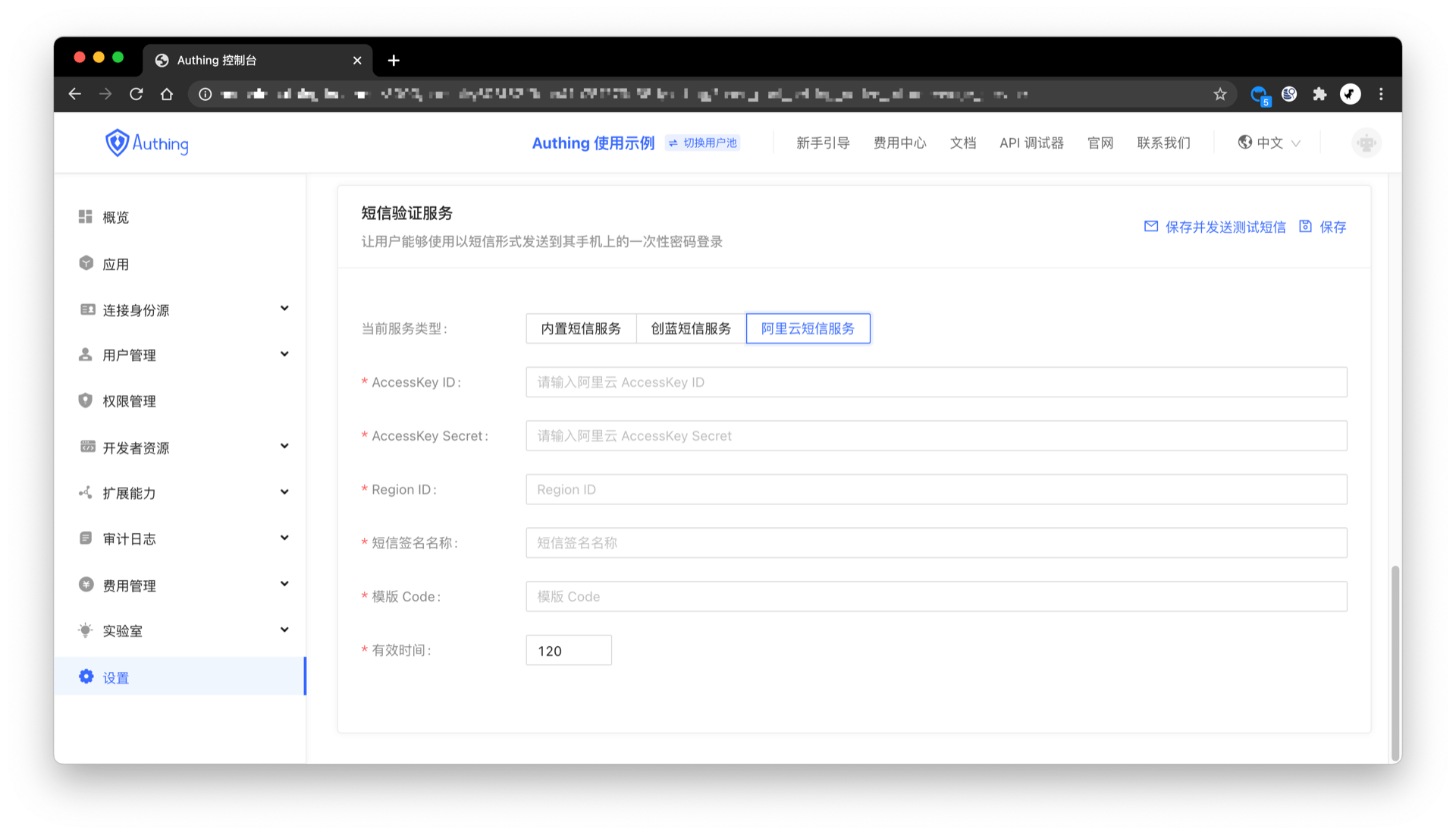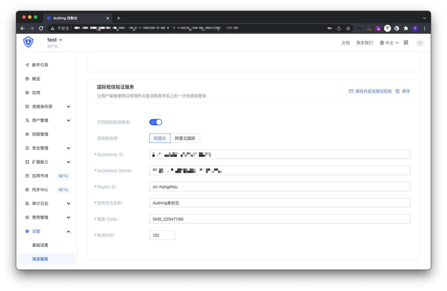 ¶ 配置自定义国际短信服务商
