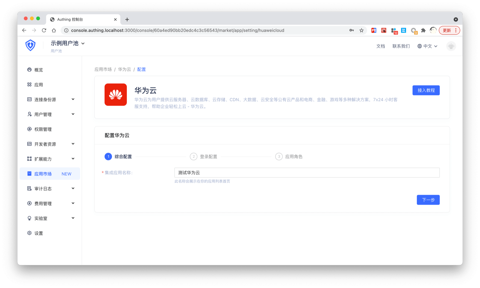 从 Authing 应用市场中获取并创建应用