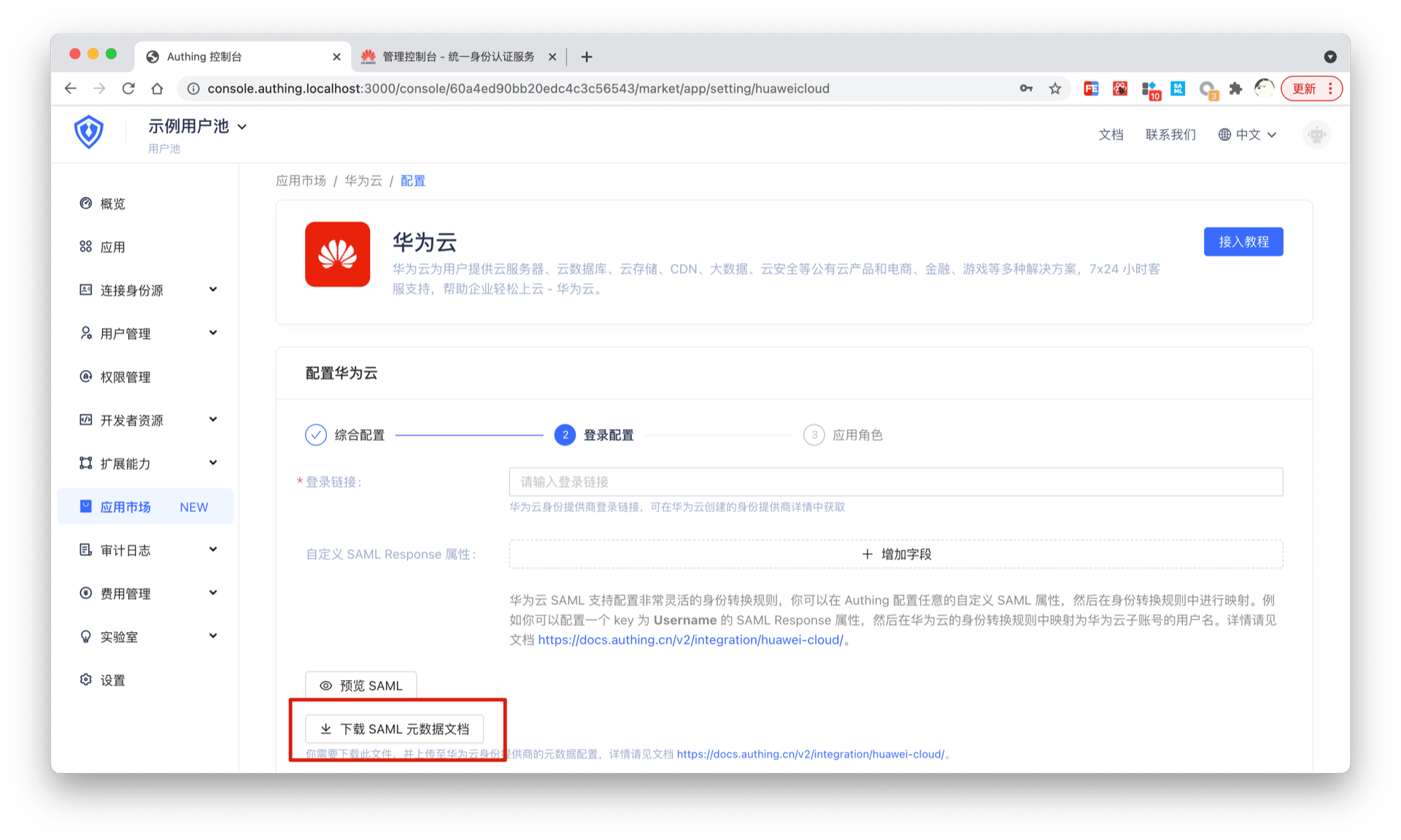 使用 Authing IdP 登录华为云
