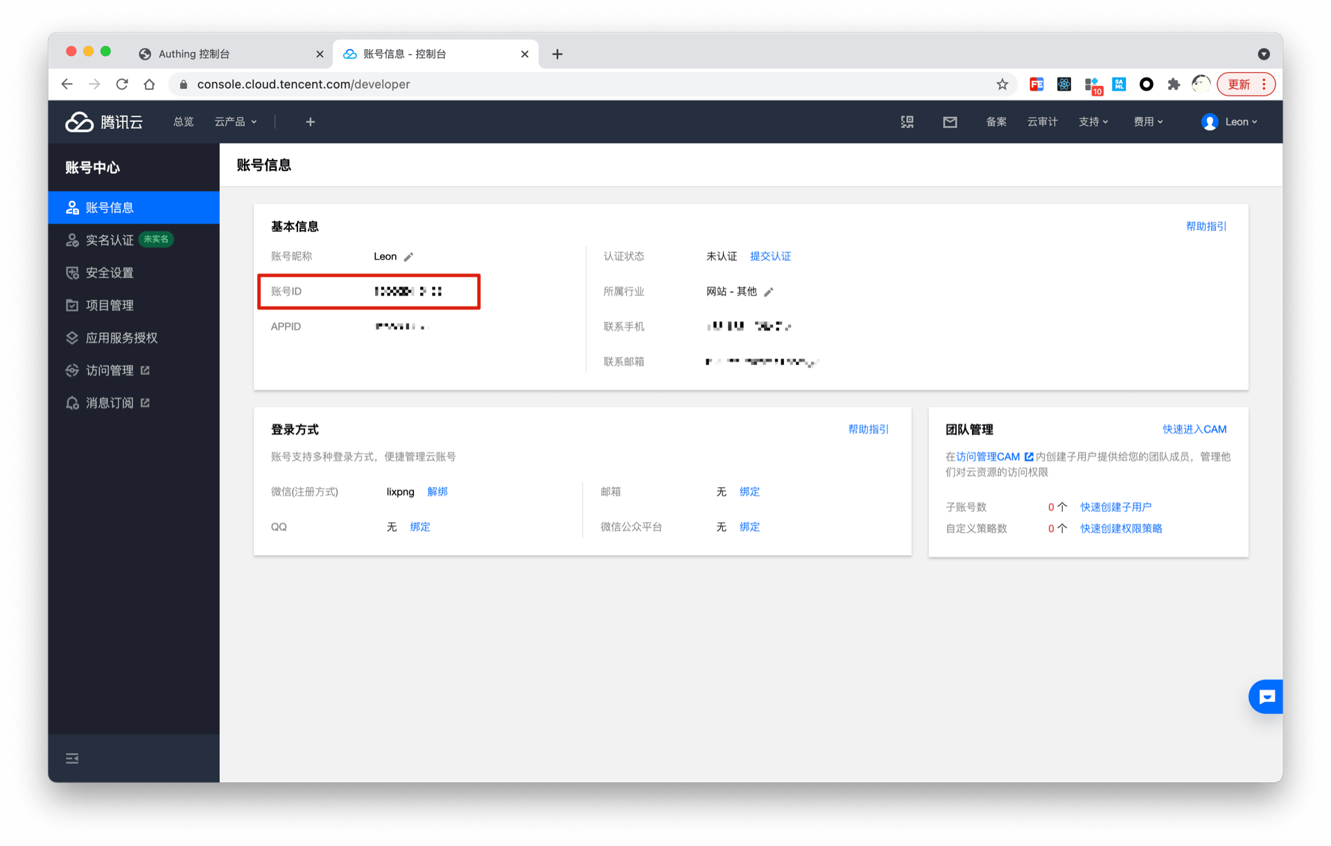 AccountID 是你的腾讯云账号 ID,从腾讯云账号信息中获取。