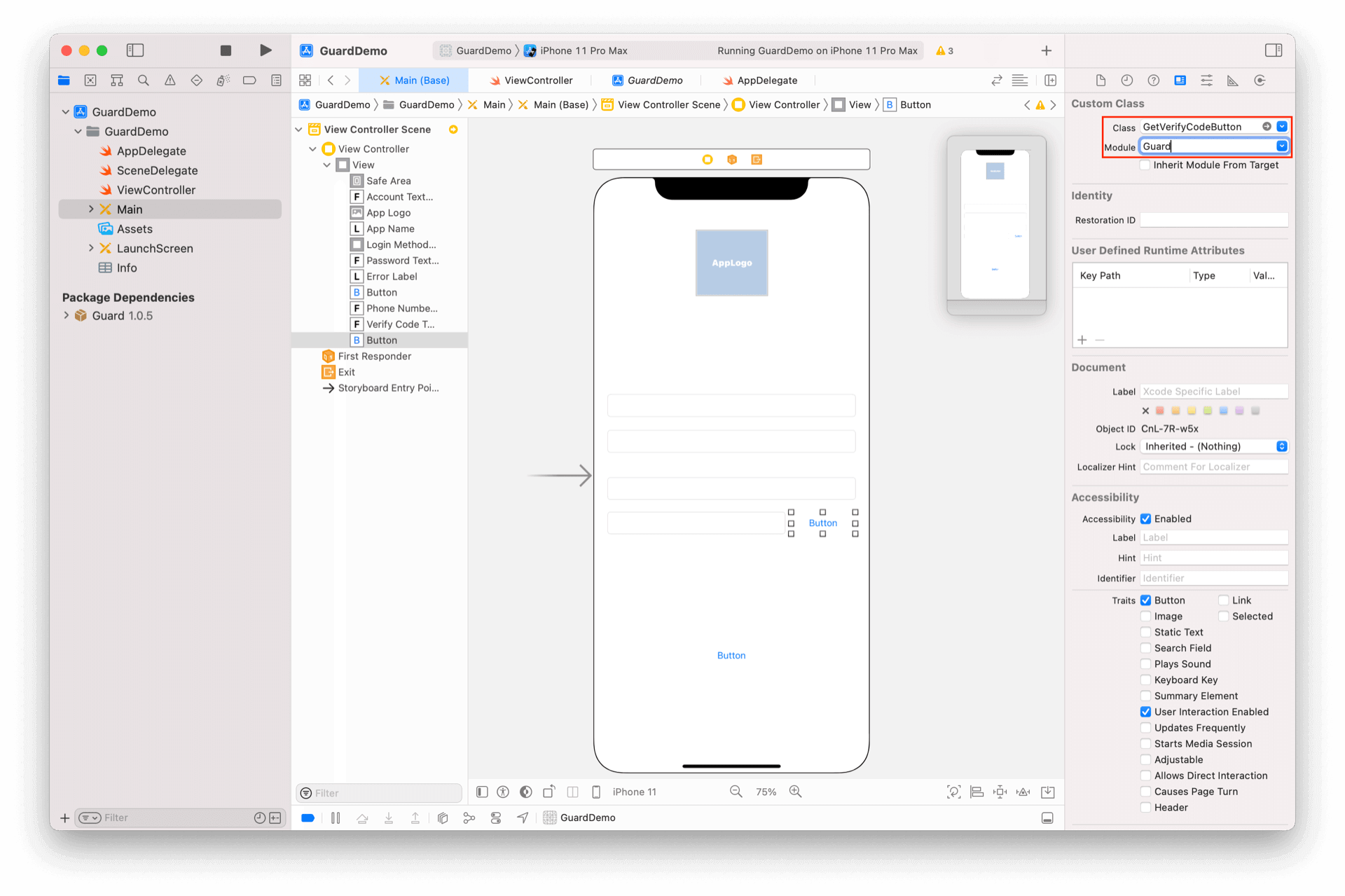 iOS 默认按钮文字较大,我们修改一下 GetVerifyCodeButton 的属性,同时去掉默认的 "Button" 文字