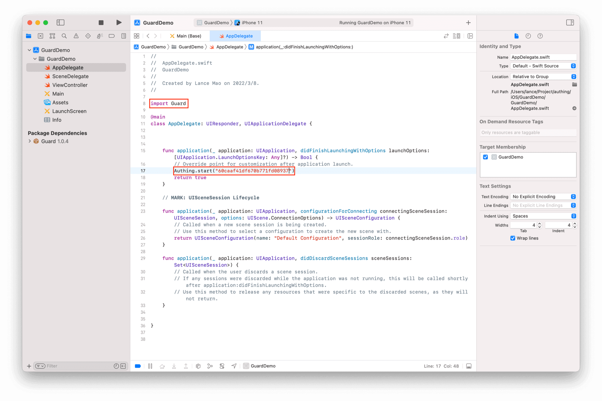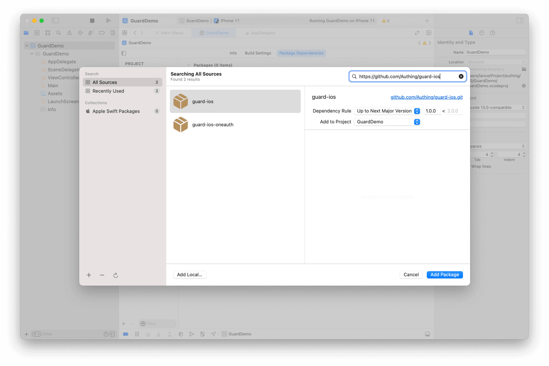 在 Swift Package 搜索栏输入:https://github.com/Authing/guard-ios