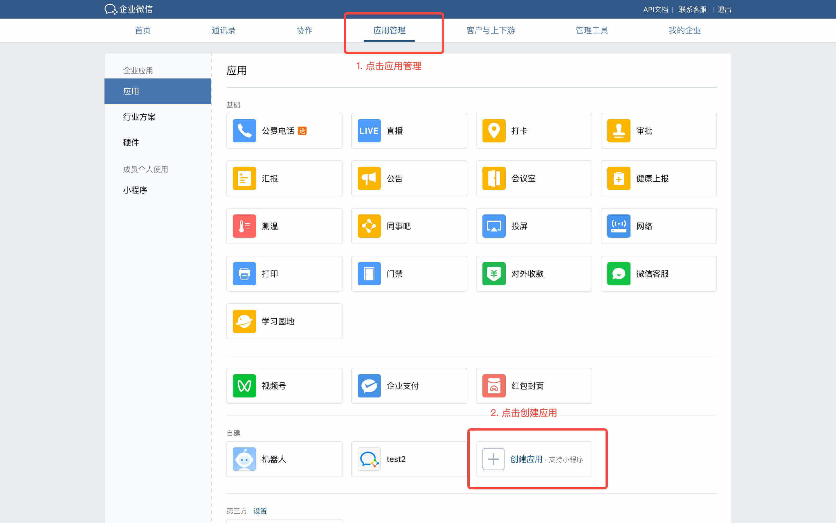 ¶ STEP 1:在企业微信管理后台 (opens new window)进行配置