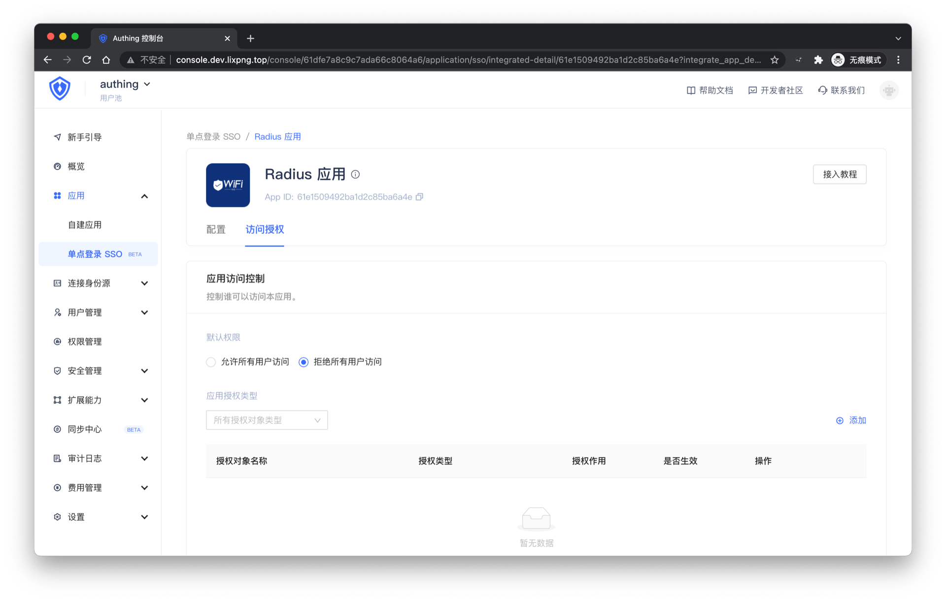 | appId | 字符串 | authing radius 应用 id | |