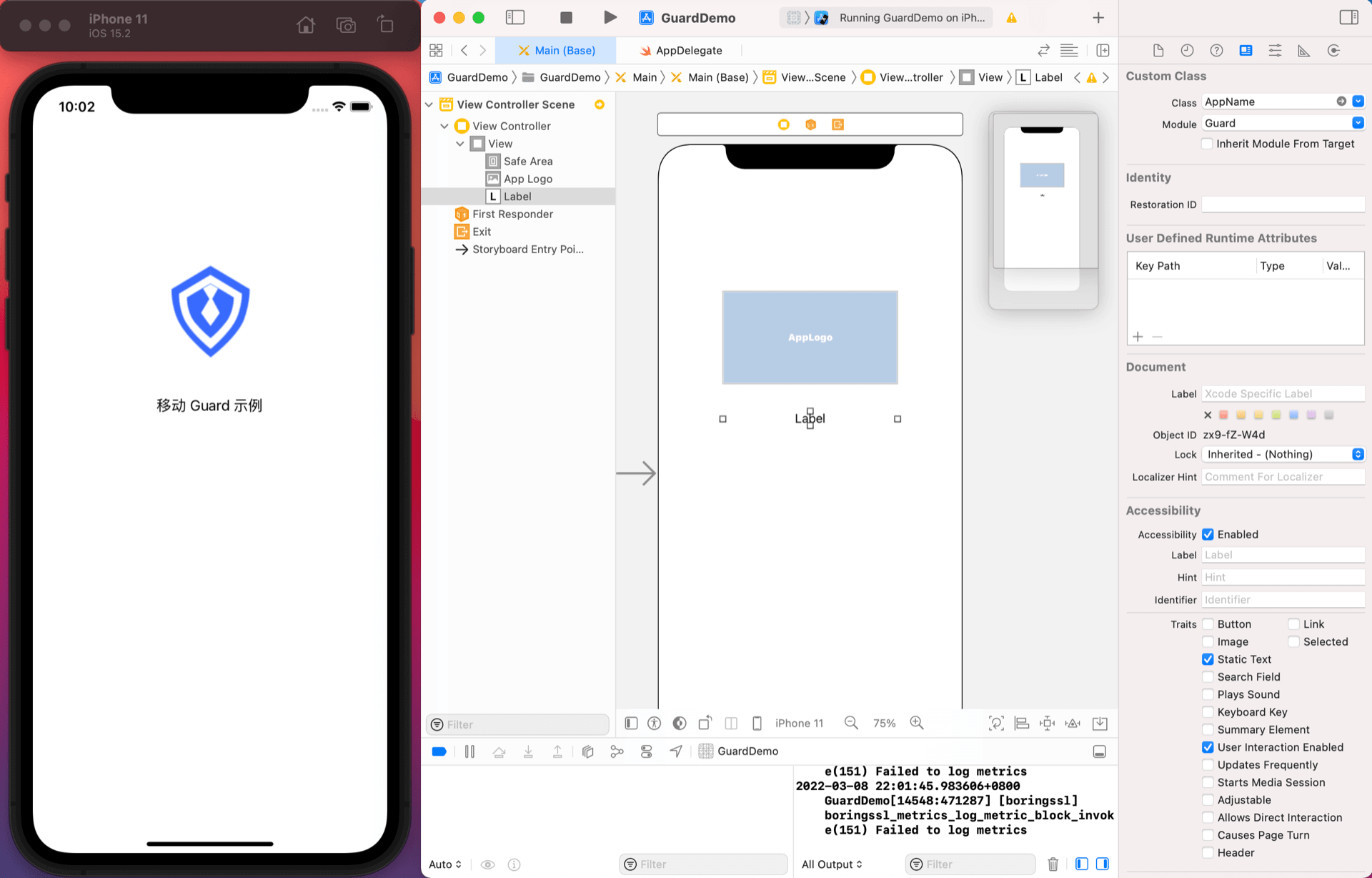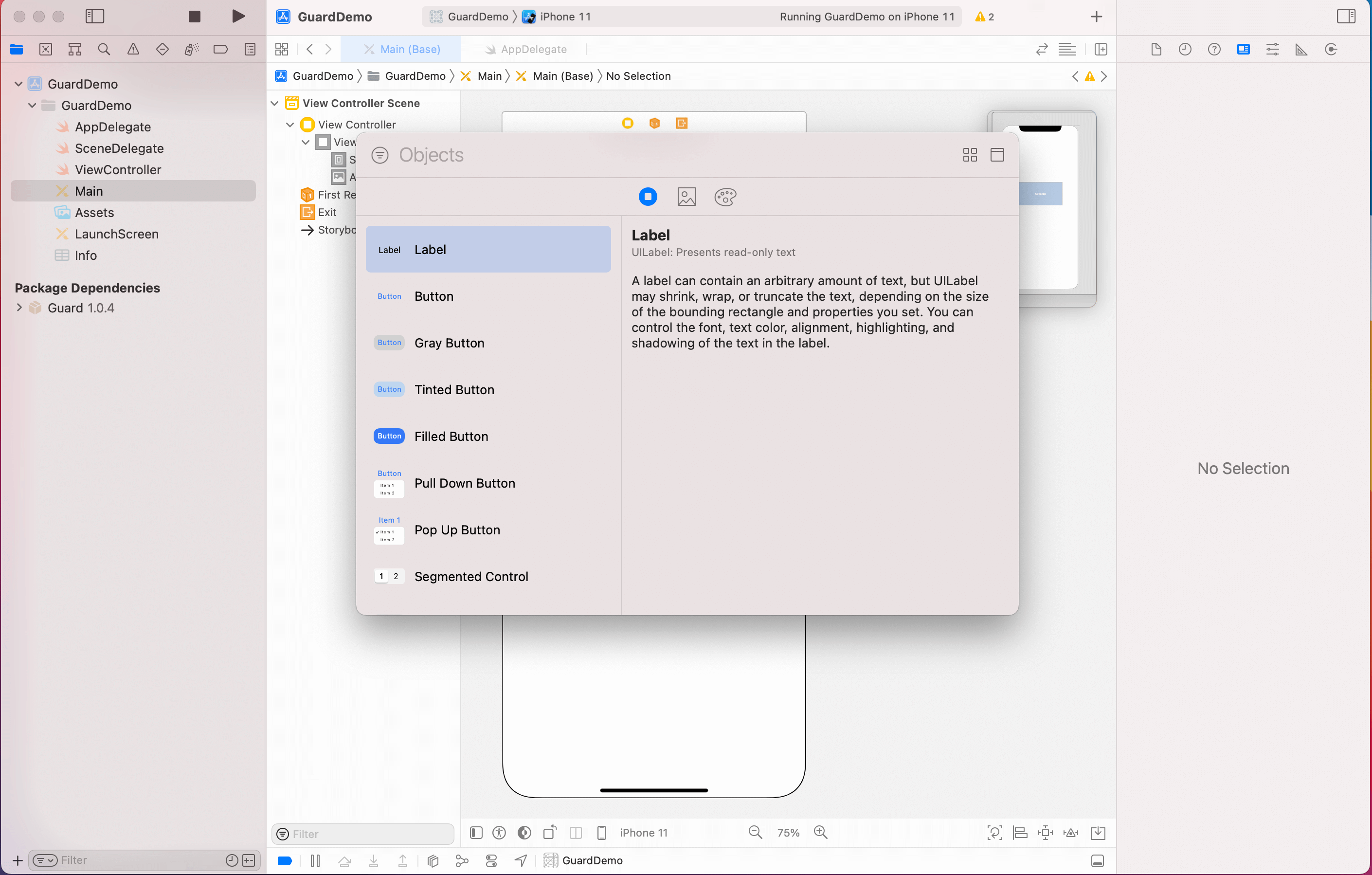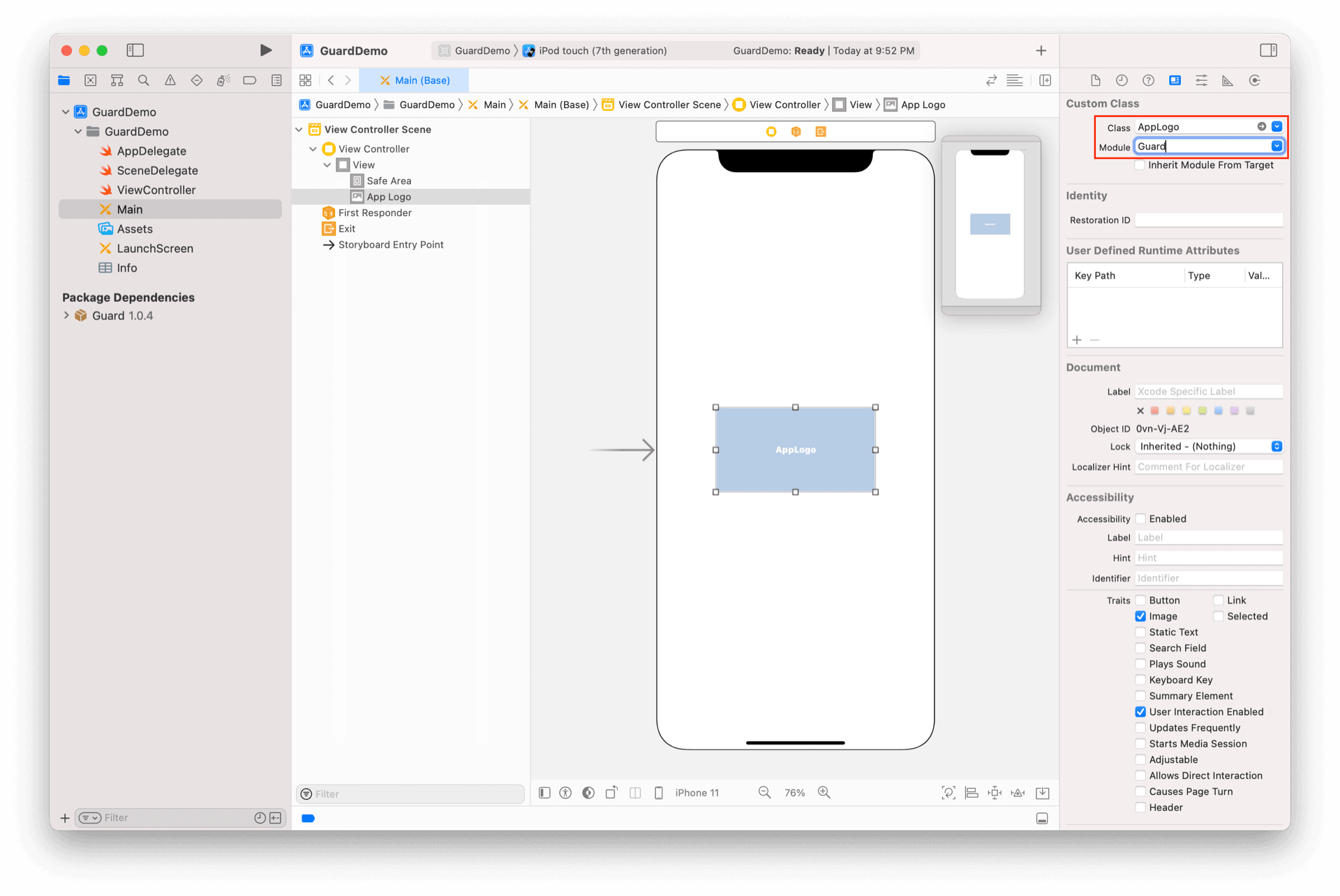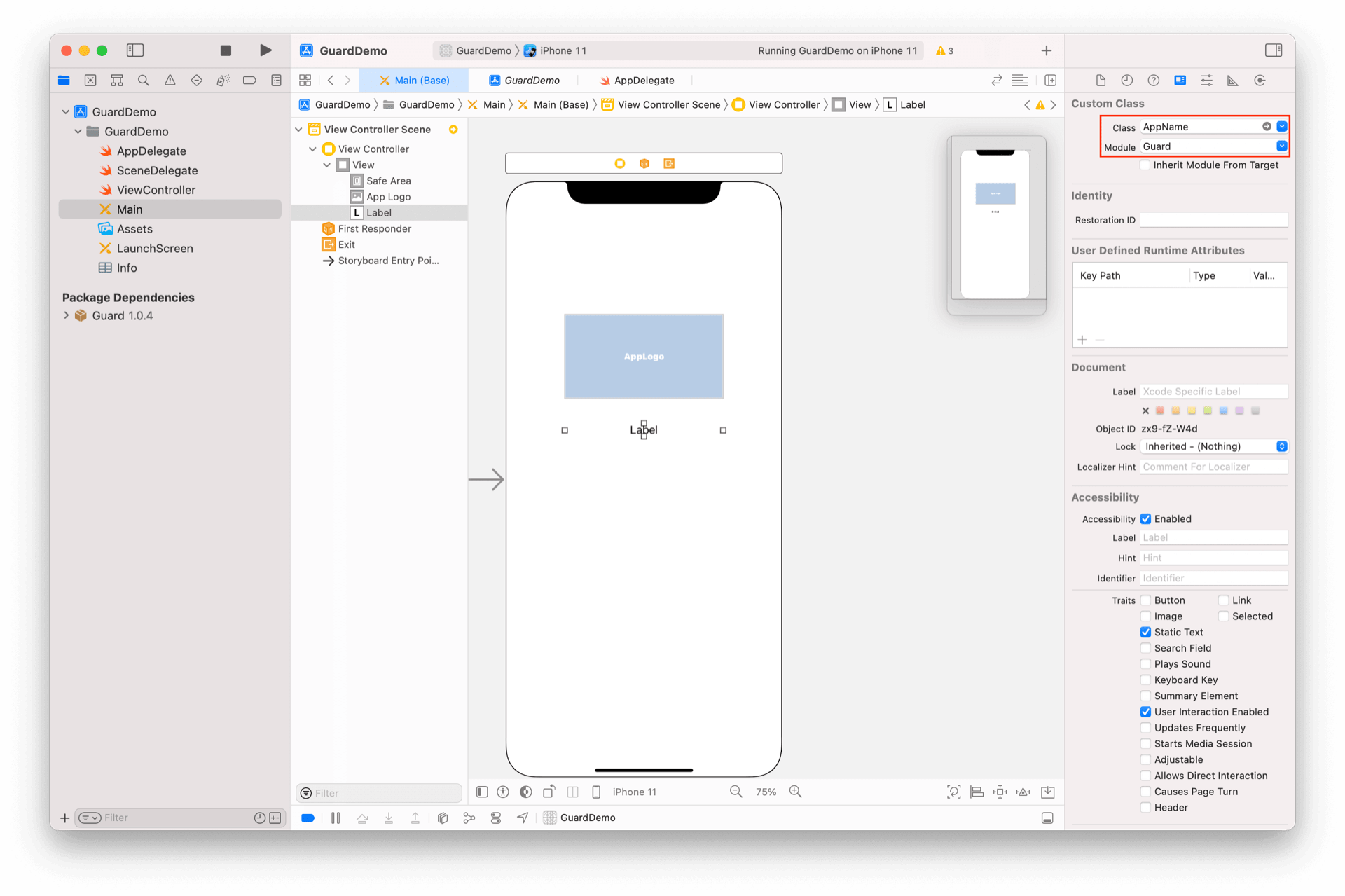 注意 Module 为 Guard。这是 iOS 模块化机制要求的。所有 Authing 提供的超组件都在 Guard 模块里面,后续不再赘述
