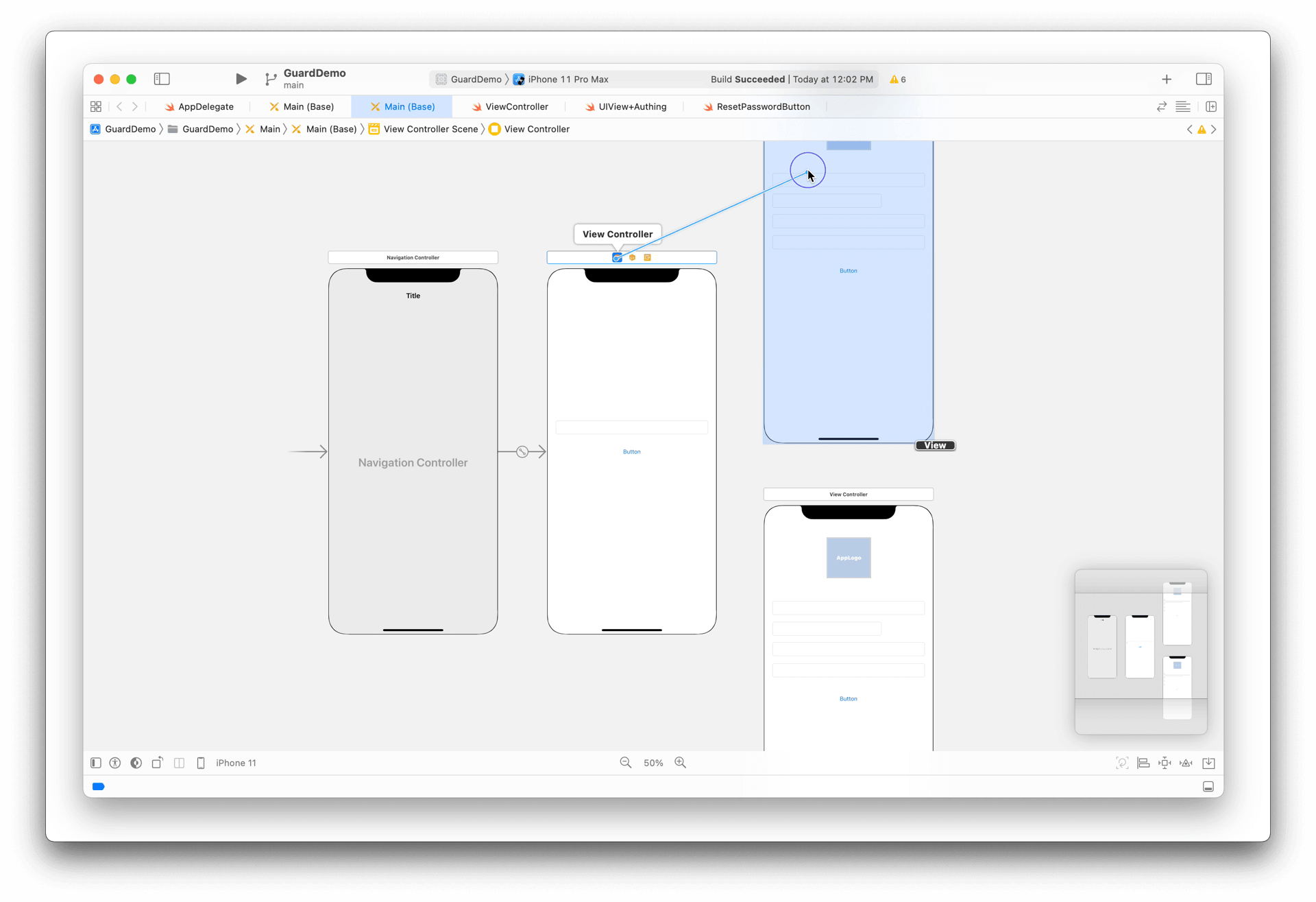 将前面两个教程的 ViewController 拷贝过来,如下图: