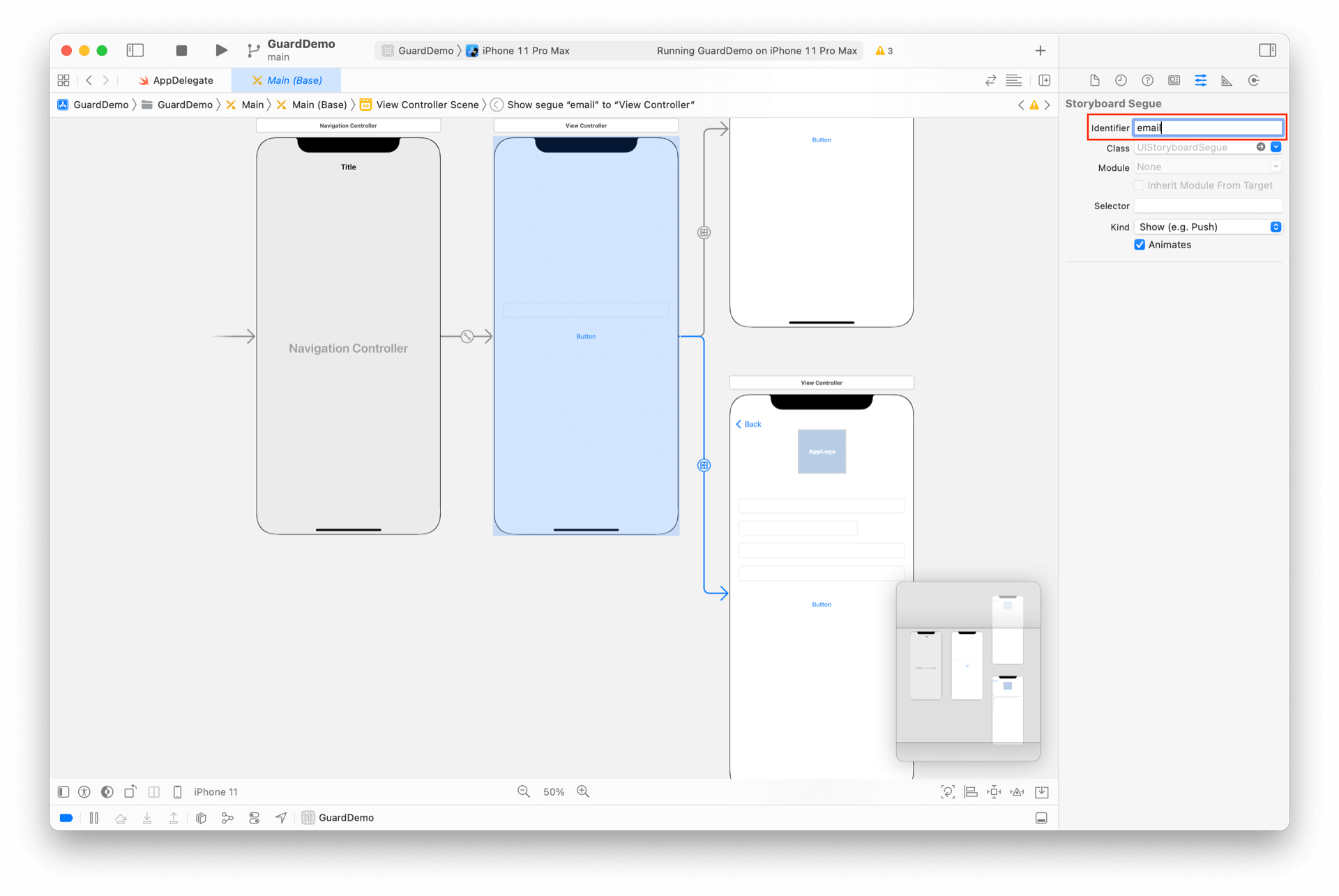 同理,再设置入口页面到邮箱地址重置密码页面 Segue 的 Identifier 为 email