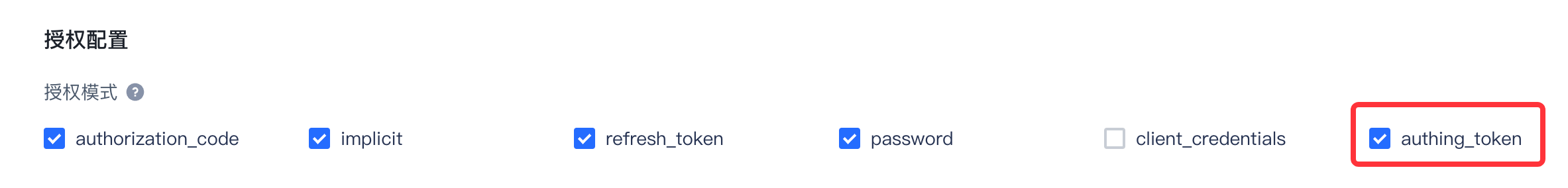 如你的业务需求要求登录之后获取到 `accessToken`,请在**应用配置-授权模式**下勾选 `authing_token`。