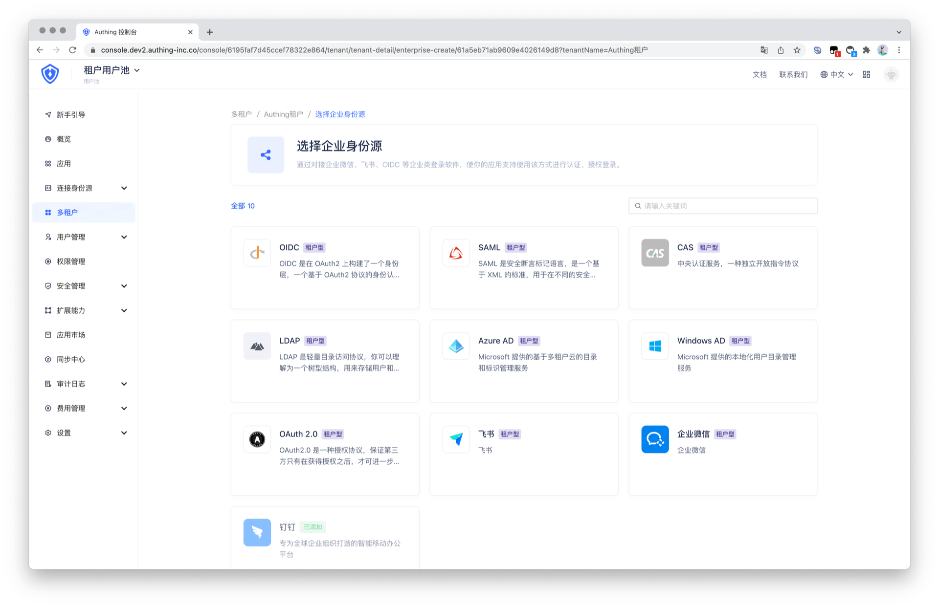 当前已支持添加第三方企业身份源作为租户的个性化登录方式。